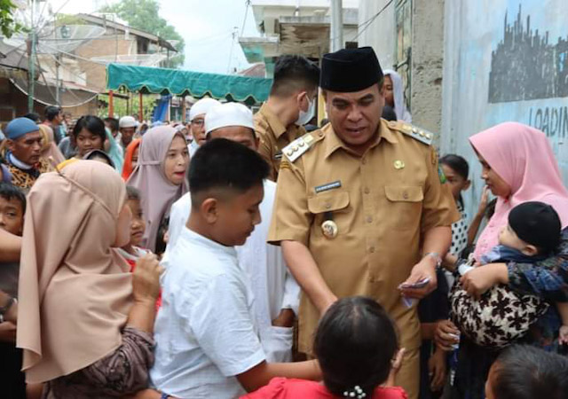 Madina – Puluhan Bocah mengerubungi Bupati Mandailing Natal (Madina) HM Ja’far Sukhairi Nasution di Banjar Kobun, Kelurahan Panyabungan II, Kecamatan Panyabungan, Selasa (18/1/2022) sore.