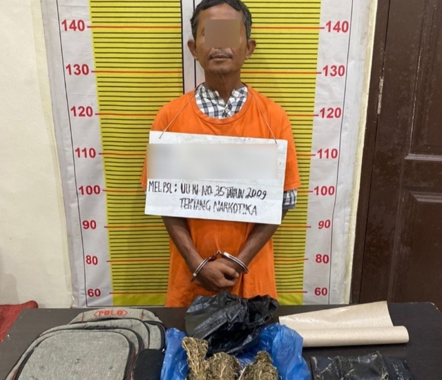 “Saat penggeledahan badan, kami temukan satu paket ganja seberat 0,7 Gram terbungkus kertas nasi warna cokelat dari kantong celana depan sebelah kirinya,” terang AKP Ivan Sitompul.