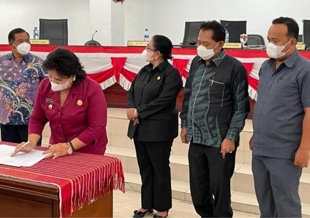 Karo- Dewan Perwakilan Rakyat Daerah (DPRD) Kabupaten Karo dengan Pemerintah Kabupaten Karo tandatangani nota kesepakatan atas Kebijakan Umum Anggaran dan Prioritas Plafon Anggaran Sementara (KUS PPAS) APBD tahun anggaran 2022.