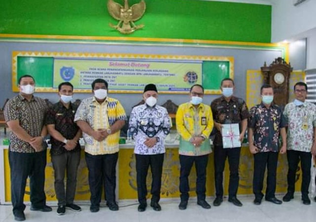 Labuhanbatu-Bupati Labuhanbatu H. Andi Suhaimi Dalimunthe ST.,MT, Menandatangani Kerjasama Dan Penyerahan Peta ZNT Dan Aset Pemerintah Dengan BPN, ST.MT menandatangani perjanjian kerjasama dan penyerahan peta ZNT serta penyerahan aset pemerintah Kabupaten Labuhanbatu dengan BPN Labuhanbatu di ruang data dan karya Bupati Labuhanbatu, Kamis (14/01/2021).