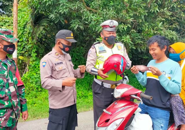 Dalam Operasi Yustisi ini, Tim membagikan masker sebanyak 40 pcs kepada warga masyarakat yang melintas.