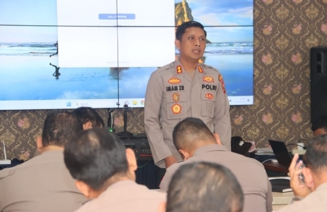 Tapanuli Selatan – Kapolres Tapsel AKBP Imam Zamroni, SIK, MH, beserta para PJU Polres Tapsel mengikuti taklimat akhir audit kinerja Itwasda Polda Sumut tahap I TA 2023 secara virtual, Selasa (9/5/2023).