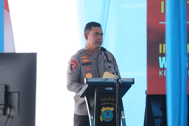 Serdang Bedagai – Kapolda Sumatera Utara, Irjen Pol Whisnu Hermawan Februanto, S.I.K., M.H., memberikan pesan strategis kepada seluruh personel Polres Serdang Bedagai dalam kegiatan pembinaan yang berlangsung di Mapolres Sergai, Kamis (13/11/2025).
