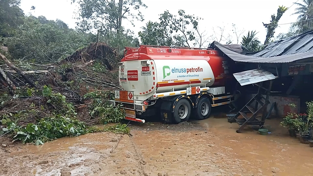 Tapanuli Selatan – Jalan yang menghubungkan Padangsidimpuan -Batang Toru putus total akibat tanah longsor dari sisi bukit jalan dan menyebabkan 1 unit mobil Tanki menutup total badan jalan yang menimpa truck Tanki tersebut.