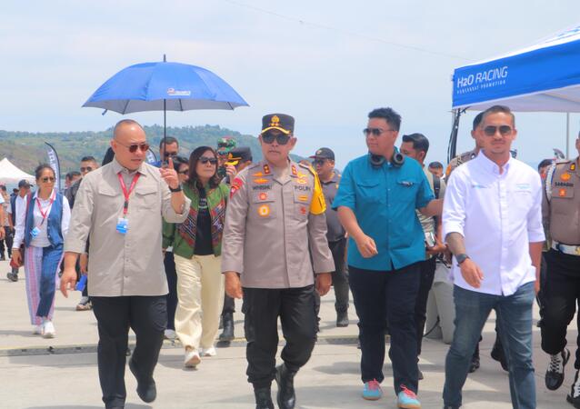 Toba – Kapolda Sumatera Utara, Irjen Pol Whisnu Hermawan Februanto, meninjau langsung kesiapan pengamanan serta pelaksanaan ajang internasional Aquabike Championship 2025 dan F1H2O Powerboat Championship 2025 di kawasan Balige dan Parapat, Sabtu (16/8/2025).