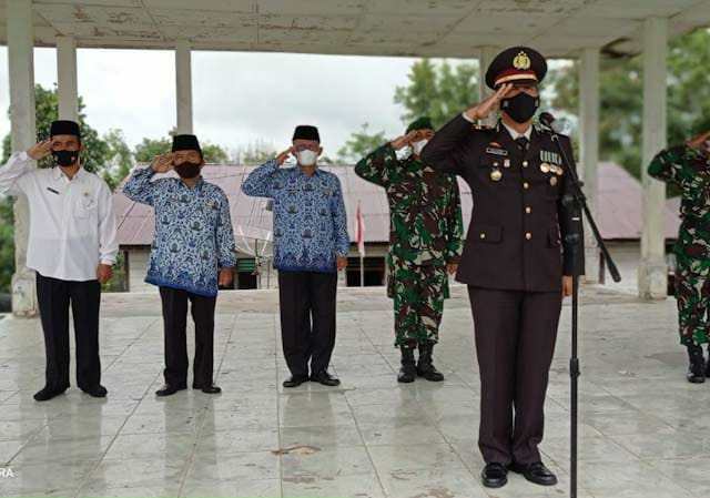 Tapanuli Selatan – Pada Peringatan HUT Kemerdekaan RI yang ke-76 tahun 2021 di tengah pandemi Covid-19, Kapolsek Saipar Dolok Hole Polres Tapsel Iptu Zulham, SH memimpin dan bertindak sebagai Irup (Inspektur Upacara) Peringatan HUT Kemerdekaan RI yang ke-76 di Kecamatan Saipar Dolok Hole, Selasa (17/8/2021) pukul 08.00 WIB tepatnya di Lapangan Batara Wisnu Kelurahan Sipagimbar Kecamatan Saipar Dolok Hole (SD Hole) Tapsel.