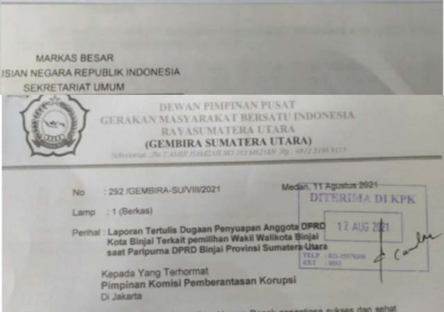 Sementara itu laporan di KPK, sesuai surat No:292/GEMBIRA-SU/VIII/2022 tertanggal 11 Agustus 2021.
