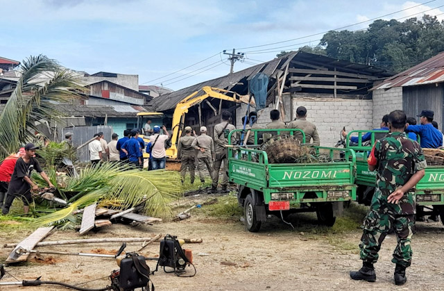 Namun secara bersamaan, dalam kegiatan tersebut juga dilakukan pembongkaran bangunan menggunakan alat berat kenderaan Excavator di lokasi UD. Budi Jaya oleh Pemkot Sibolga.