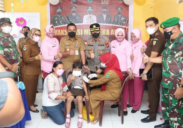 Adapun target Vaksinasi Covid – 19 dosis I bagi anak usia 06 – 11 Tahun di TK Kemala Bhayangkari 17 Gunungtua ini ada sebanyak 50 orang atau 5 vial dengan Tim Vaksinator UPTD Puskesmas Gunung Tua dan Tim Bidokkes Polda Sumut.