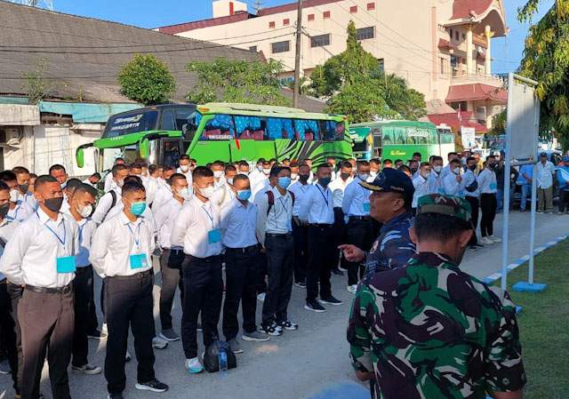 Tanjungbalai- 134 Calon Bintara dan 52 Calon Tamtama Putra Daerah wilayah kerja TNI-AL Lanal TBA Berangkat ke Lantamal I Belawan.