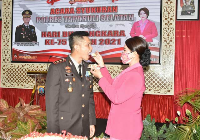 Syukuran ditandai dengan pemotongan Tumpeng oleh Kapolres Tapsel dan Ketua Bhayangkari Cabang Tapsel yang diberikan kepada Polki dan Polwan termuda Polres Tapsel dan dilanjutkan dengan Surprise dari Danyon Inf 123/Rajawali dan anggota serta wartawan setabgasel dengan memberikan kue ulang tahun kepada Kapolres Tapsel dan jajaran.