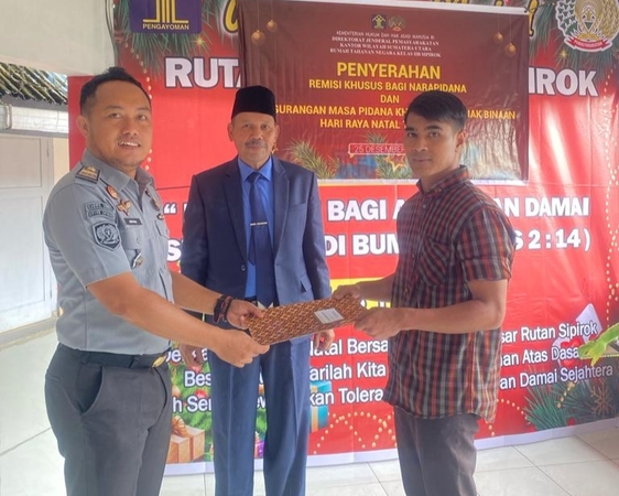 Tapanuli Selatan – Rutan Kelas IIB Sipirok menggelar pemberian remisi Natal tahun 2023 kepada Warga Binaan Pemasyarakatan (WBP) yang beragama Nasrani, sebagai ungkapan sukacita di Hari Natal, Senin (25/12/2023).